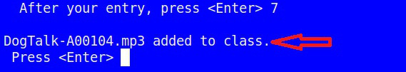 Using the Kiosk application, once you have added the two mp3 files, you can exit the file selection screen by entering “X” and then pressing <Enter>. Upon return to the “Manage class files” menu screen, you will see that the two files are now part of the master files for the current class.